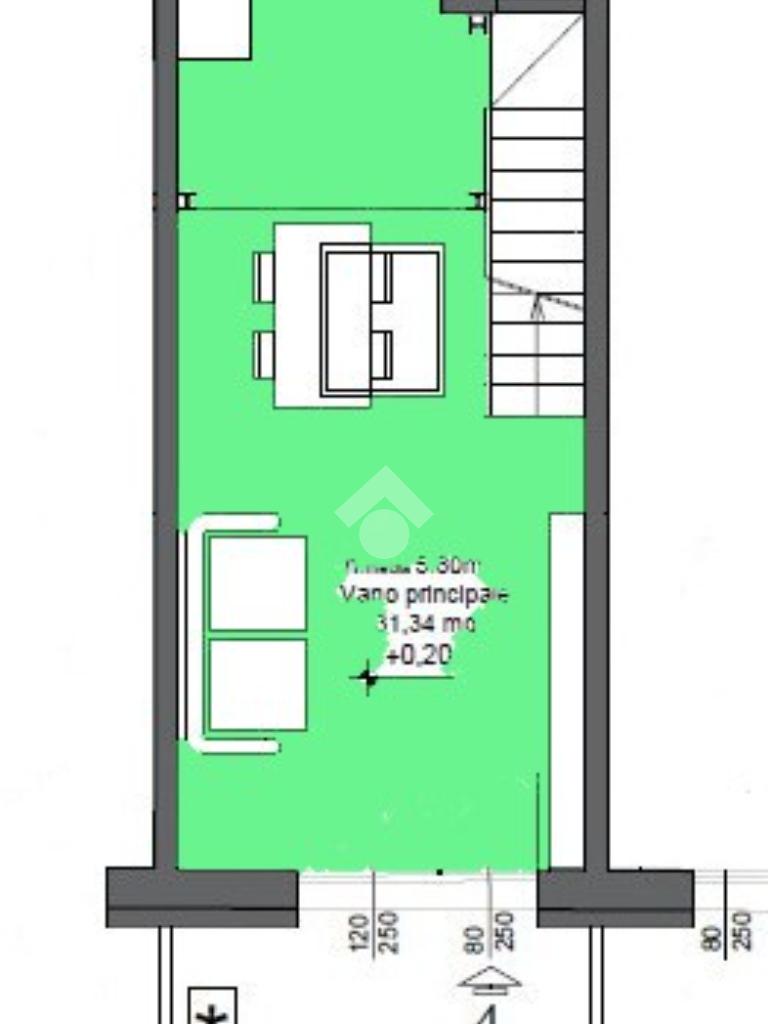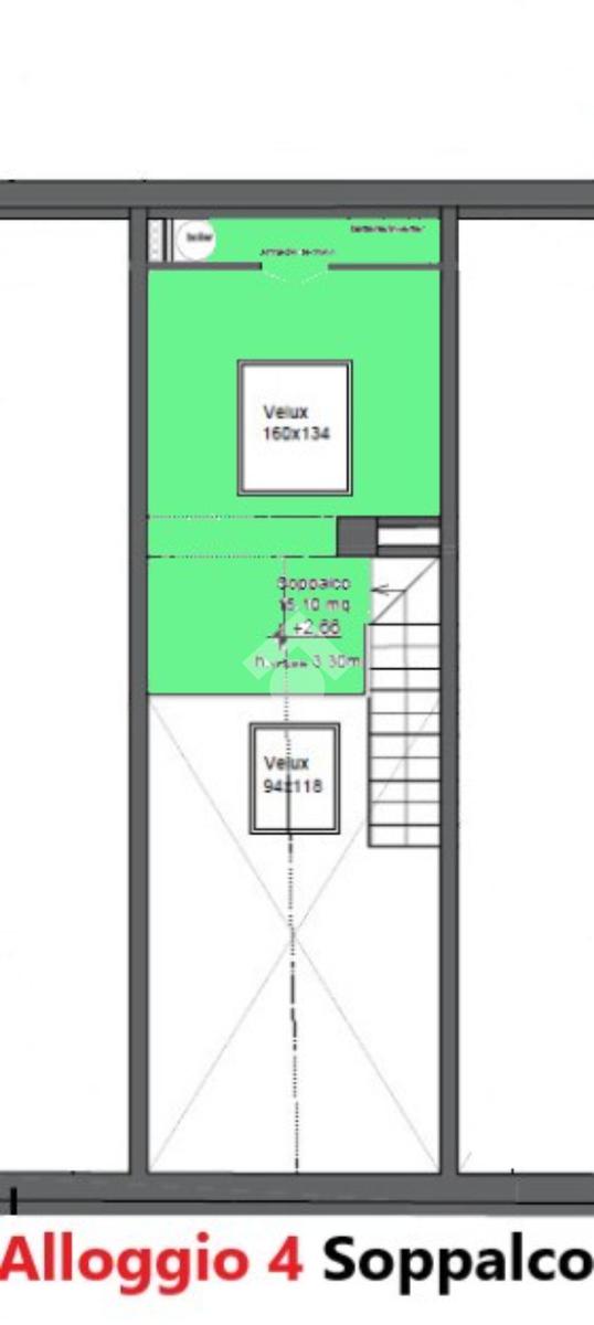Alloggio 4: P. T. di mq 31 con ingresso indipendente da corte privata, zona giorno con antibagno e bagno, salendo le scale si accede ad un soppalco da adibire a zona notte.